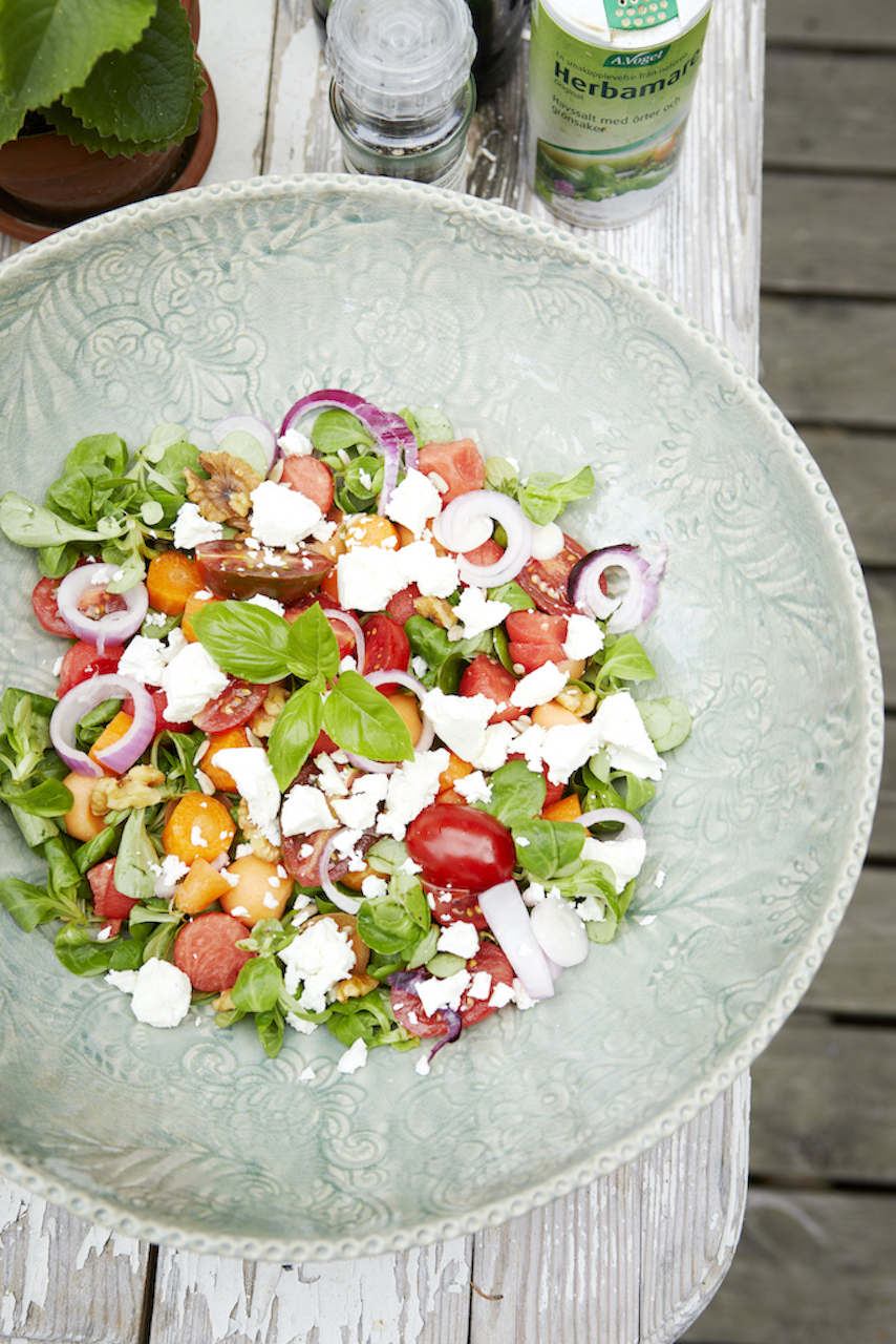 Sommartid behöver vi sältan och då är fetaost perfekt. Prova att blanda till en stor sallad med vattenmelon och andra melonsorter. Det salta och det söta är en ljuvlig kombination. Tillsammans med några basilika blad, lite av säsongens grönsaker och några droppar olivolja blir det en härlig sommarmat som också är vacker att se på.