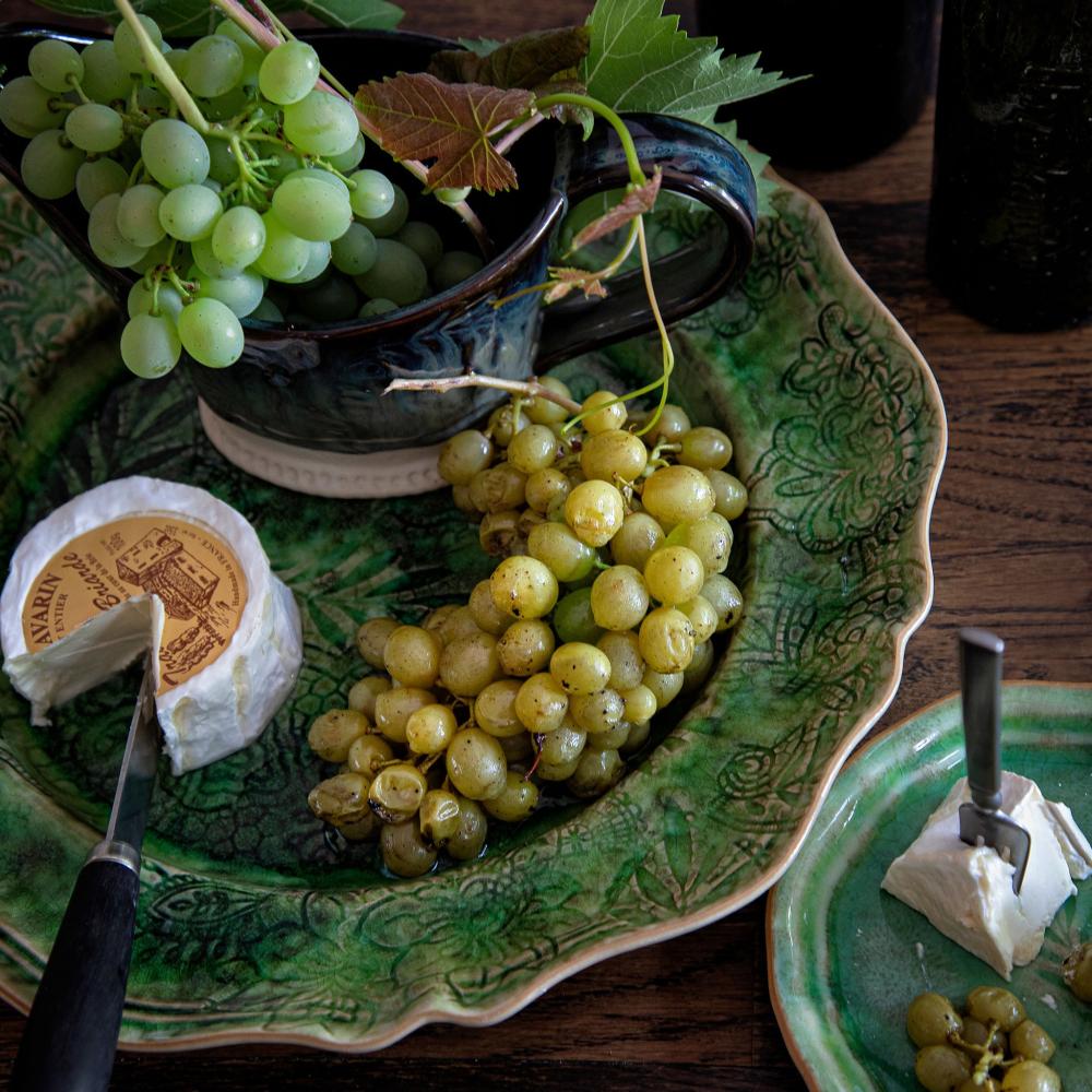 Det enkla är det geniala och ibland också det absolut godaste. Nu så här i skördetider är det på sin plats med vindruvor. På Sthål lyfter vi ostbrickan till en ny nivå med druvor som du ger lite extra glöd. Servera på vår vackra tallrik Amuse Bouche och njut.