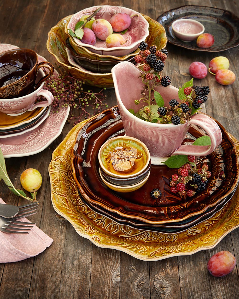 Ljuvliga glasyrer och härliga mönster som kompletterar varandra och ger liv åt bordet. Arabesque är livfulla mönster med blad, rankor och ornament som vackert tecknar sig i den glaserade keramiken. Ingen del är exakt lik den andre, men släktskapet är tydligt. Det är charmen och hela idéen med Arabesque.