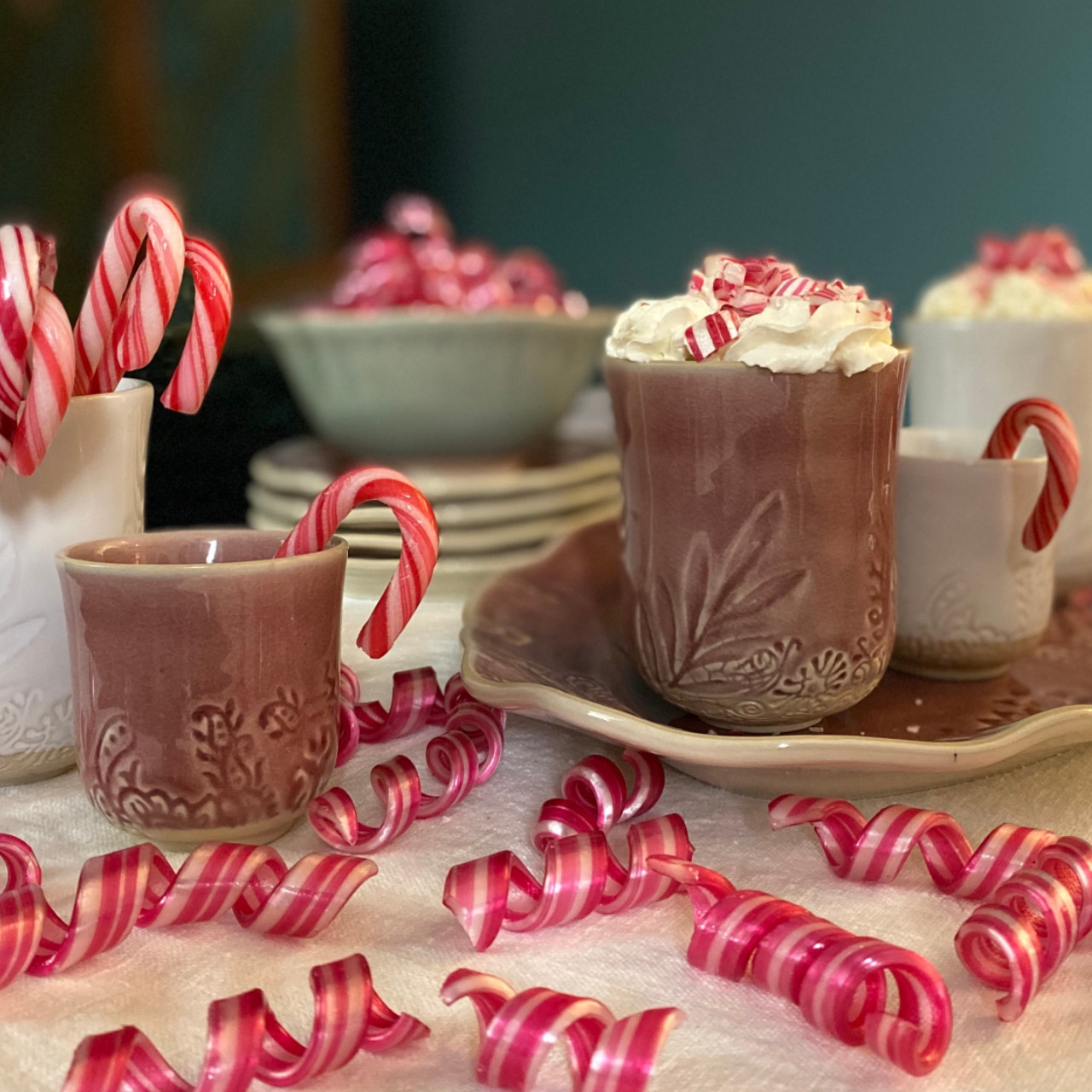 Få drycker väcker så mycket minnen och är så värmande och avkopplande som en kopp rykande varm choklad. Det passar lika bra framför brasan som i pulkabacken eller varför inte som dessert efter en god middag? Här i muggar och koppar från Arabesque med polkagriskäpp som drinkpinne.