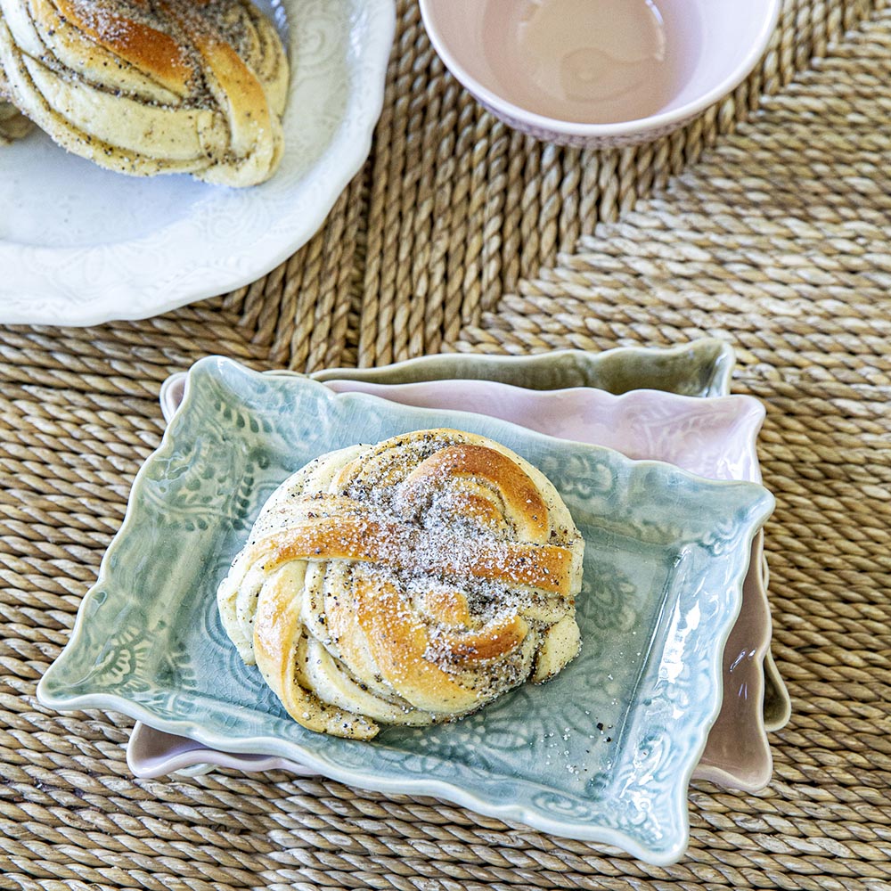 Delikatessfatet har blivit en storfavorit som varit med sedan starten av Sthål. En fulländad upplevelse för god mat. Utmärkt mingeltallrik som sätter färg på tillställningen. På tal om färg. Den blommiga gammelrosa glasyren är en effektglasyr som ger en medveten rinnighet vilket ger skön variation. Inget delikatessfat är exakt likt det andra. Precis som allt i vår kollektion Arabesque, tål också delikatessfatet att maskindiskas och klarar ugn och mikrovågsugn. Det kommer alltså att dukas till många festliga stunder.