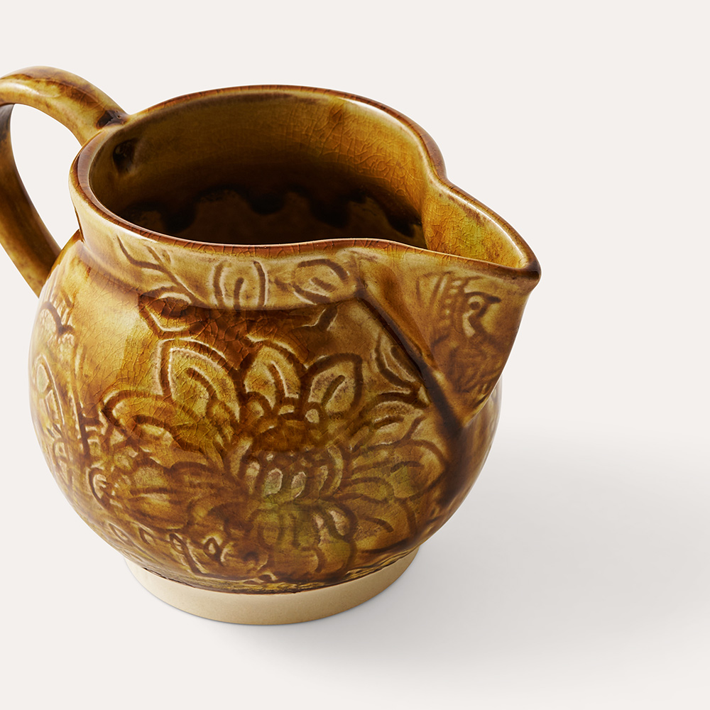 En härlig kanna som ger grädde och mjölk en fin inramning på fikabordet. Passar dig som vill njuta av vackra ting i keramik, men samtidigt tänker praktiskt. Kannan kan nämligen dukas fram på kalasbordet och sedan åka in i diskmaskinen för att bli redo för morgondagens äventyr. Att kannan är en del av vår serie Arabesque framgår av det vackra mönstret. I samma serie finns även tea mug, sugar bowl och tea caddy och allt annat i Arabesque.