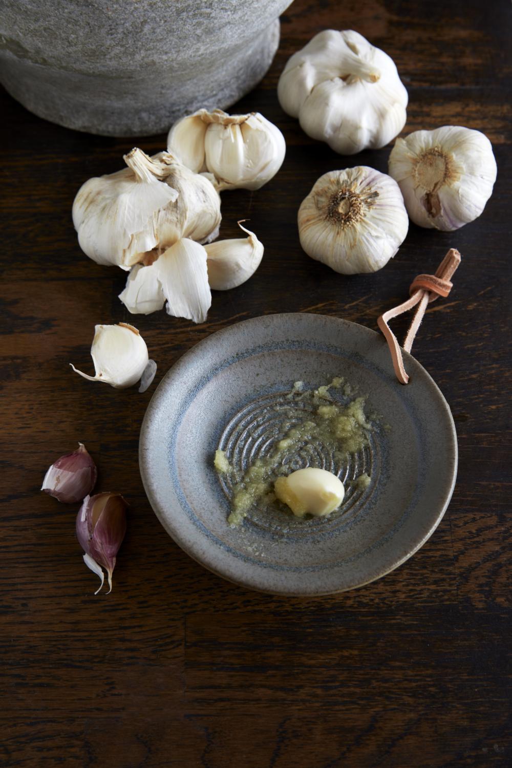 Vitlöksrivaren är precis som alla delar i serien Rustico tillverkad av återvunnen stengodslera som sedan glaseras i en matt glasyr. Här ser vi den i en glasyren Vanilla.