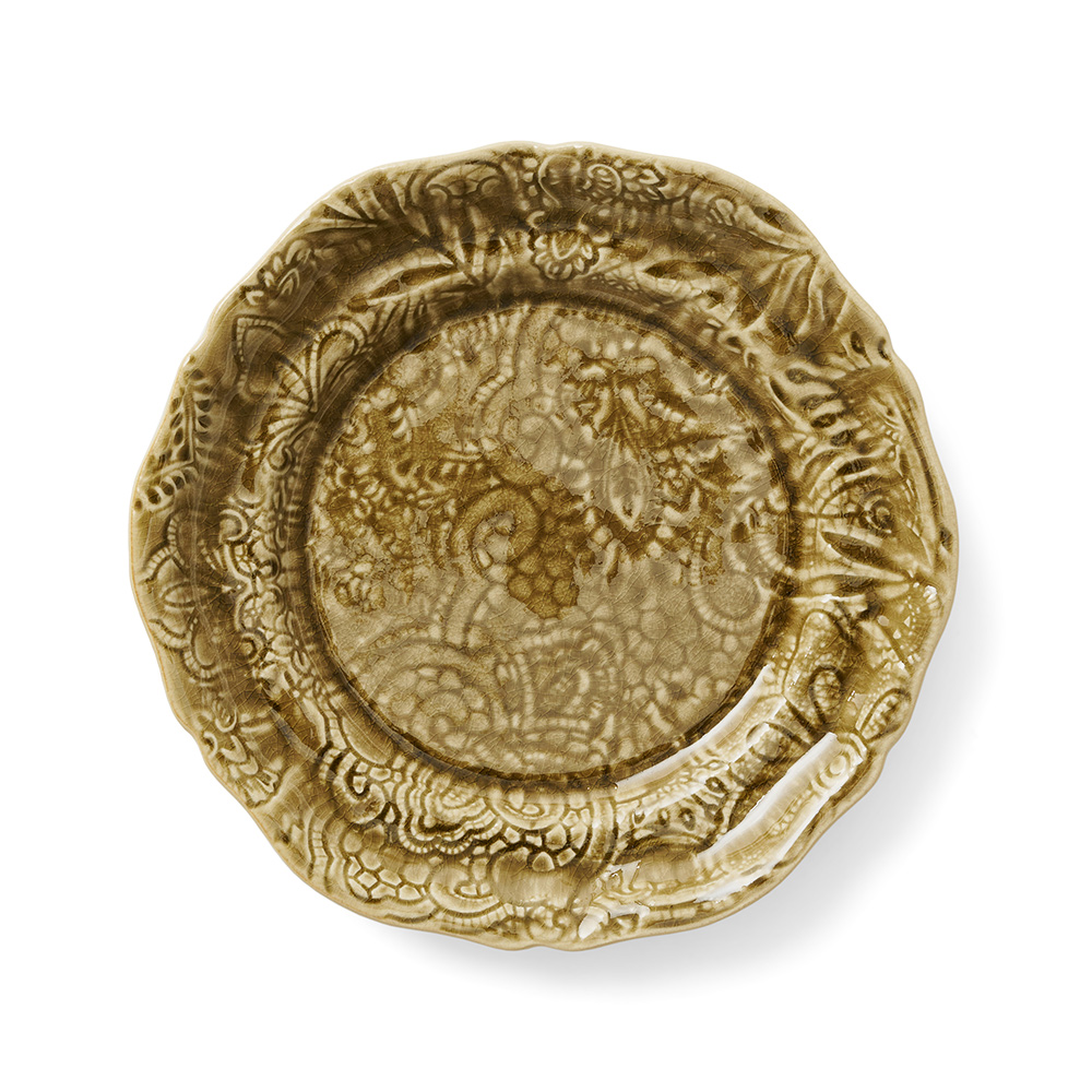 En smakfullt designad assiett ur Sthåls breda sortiment för vackra festdukningar. Assiettens storlek gör den så väldigt användbar. Duka med mattallrik i samma serie och bordet blir redo för fest. Assiettens dekorativa sirliga mönster framträder vackert i den sandbeigefärgade glasyren. Mönstret är så typiskt för Sthåls serie Arabesque. Sandbeige är en effektglasyr med små fina dekorkrackeleringar som ger liv och variation åt assietten. Den flödande glasyren ger en livfull yta med skiftande toner och intensitet vilket gör varje exemplar unik.