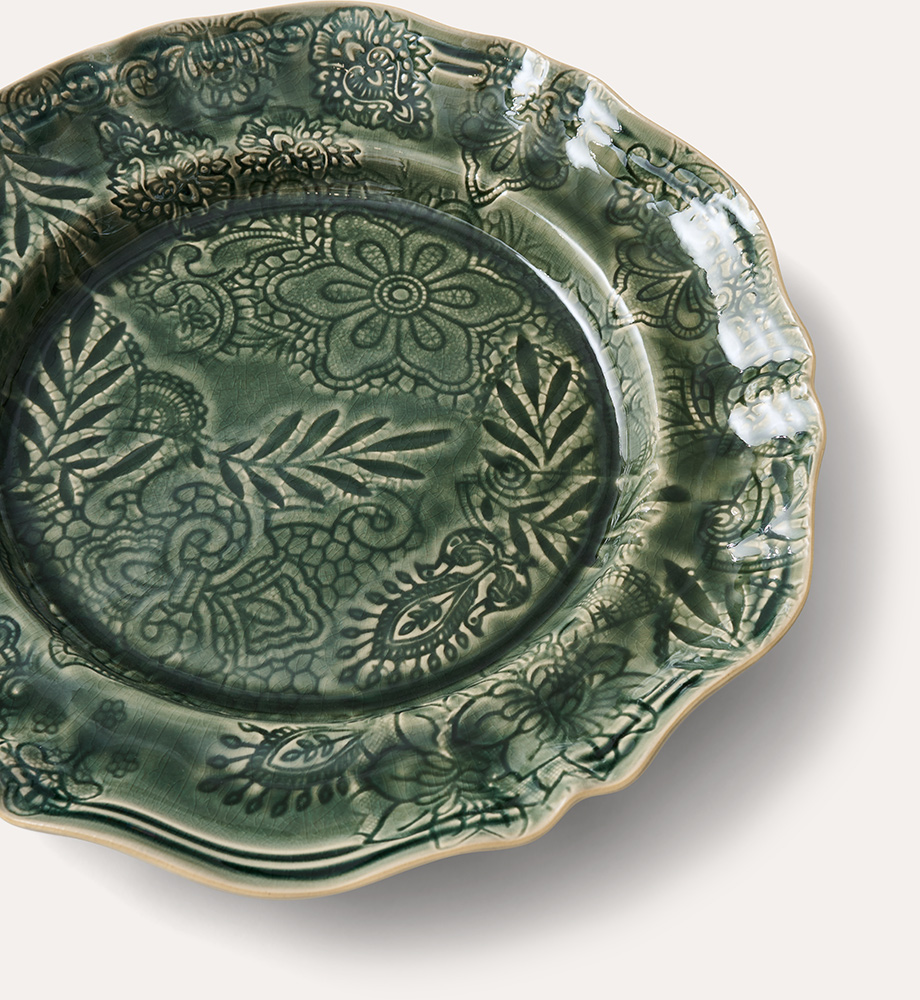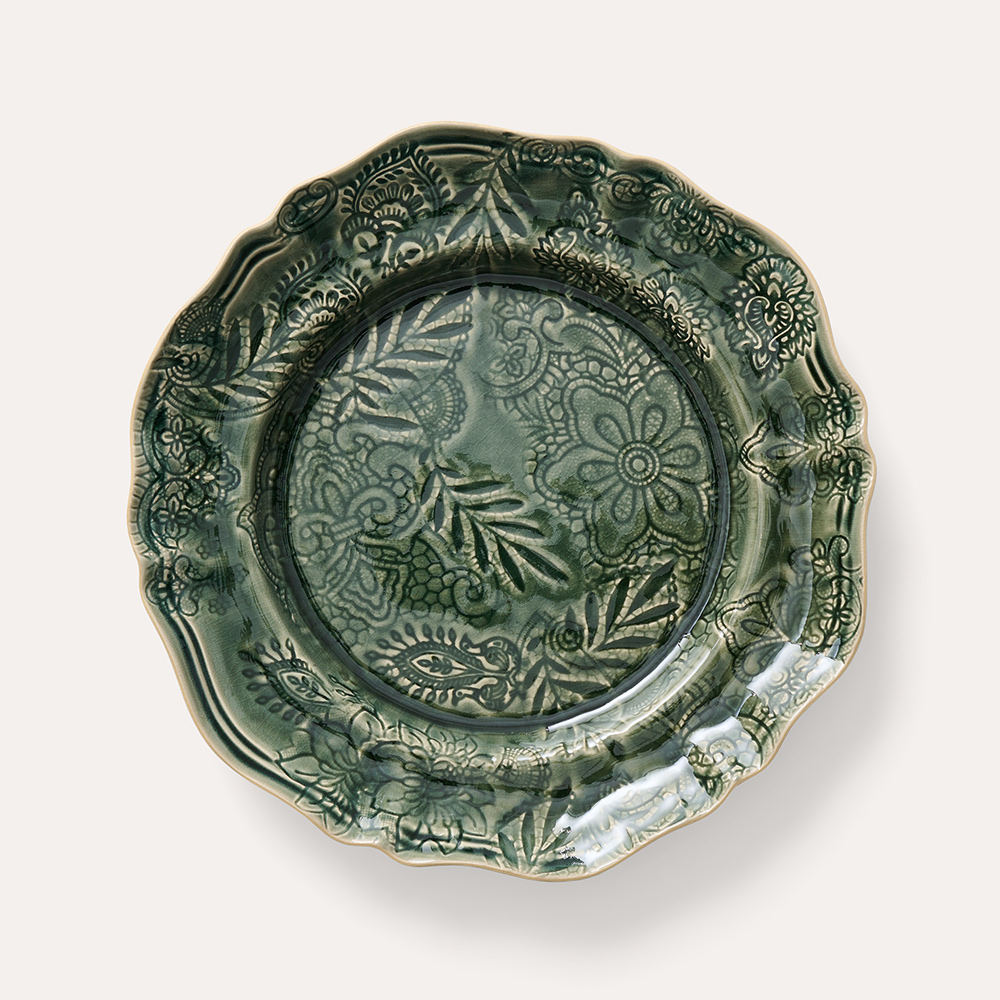 Den eleganta färgen matchar både maten och sällskapet och all övrig keramik i serien Arabesque. Var säker, det här fatet kommer att vara huvudattraktionen på många middagar.